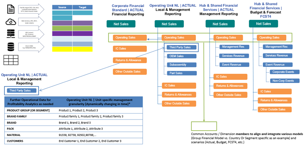 K ‚zajištění chodu‘ organizace se nejlépe používají transakční systémy, jako je ERP. V komplexní organizaci může být přítomen libovolný počet těchto systémů a mohou pocházet od více dodavatelů. Zda existuje jeden „globální template“ napříč skupinou, nebo nespočet ERP různých dodavatelů či generací, to se liší případ od případu.