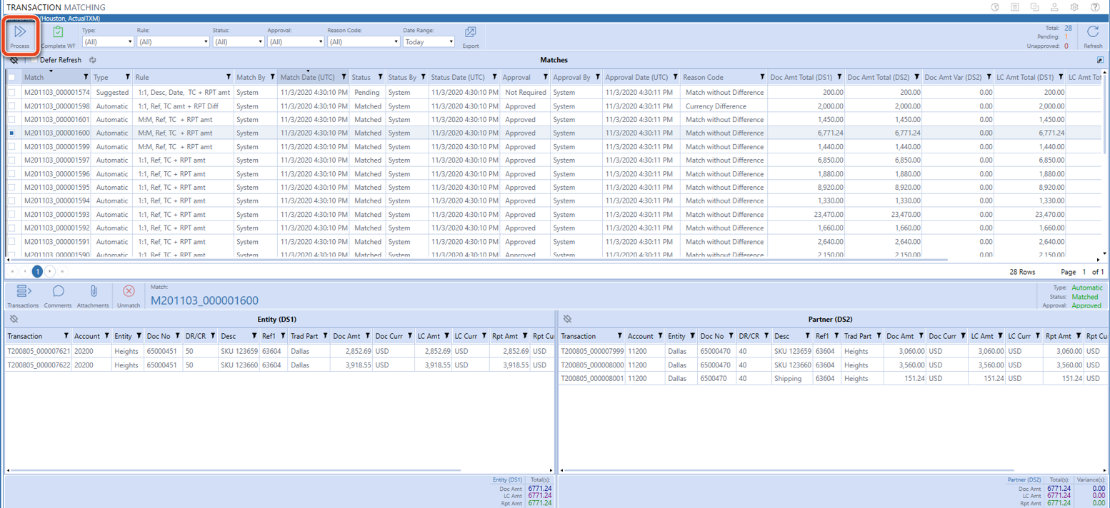 Transaction matching is the process of collecting and matching large volumes of transactions (from two or more sources), identifying and resolving differences in order to accurately finalize period-end balances and close the books. As such, the efficiency of this process has direct implication on speed, accuracy and confidence in financial statements. Common examples of transaction matching use cases include tasks like matching Bank Statements to General Ledger Cash Accounts or Matching Intercompany Transactions at the Invoice/Transaction Level.